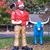 Then Evan notices Conan picking on some kids. Now that even towers over the bully it is his turn to exact revenge. Ever the prick, Conan still picks on Evan even though he's huge, the doofus promptly gets placed into the branches of a rather tall tree. Personally I would have flung him like a rag doll through the air, but to each their own. Having fun with his new found size, he starts heading toward the playground, accidentally stomping cars and completely neglecting to SMASH KERMIT INTO THE GROUND! He heads to the baseball field where the children eagerly all urge him to play with them instead of running in fucking terror at the sight of human being that is large enough to smash cars with a single foot.Just when he was starting to have some fun, the fuzz shows up. Cops and firefighters lead by Conan march against giant Evan. They ask him questions, and don't particularly care about the answers before they start blasting him with fire hoses. Apparently this is how you handle giant children. This causes Evan predictably to flee. Since he has long ass legs, he can do a pretty good job of it. Kermit gets the idea to use the potion he mixed to shrink Andy's bug bite to shrink kid ginormo. Unfortunately he doesn't have any left so he has to mix up another batch. Instead of shrinking him, this new mix turns him blue and gives him the hiccups. The next mix gave him feathers so he looked like a giant blue eagle. The last potion works, right as cops roll up and ask if they've seen any giant children around. Whew! All is right with the world again. That night Evan had a nightmare about what had happened. When he woke up his dog Trigger came in and picked him up in his mouth. Evan shrunk! FUCK YOU KERMIT!